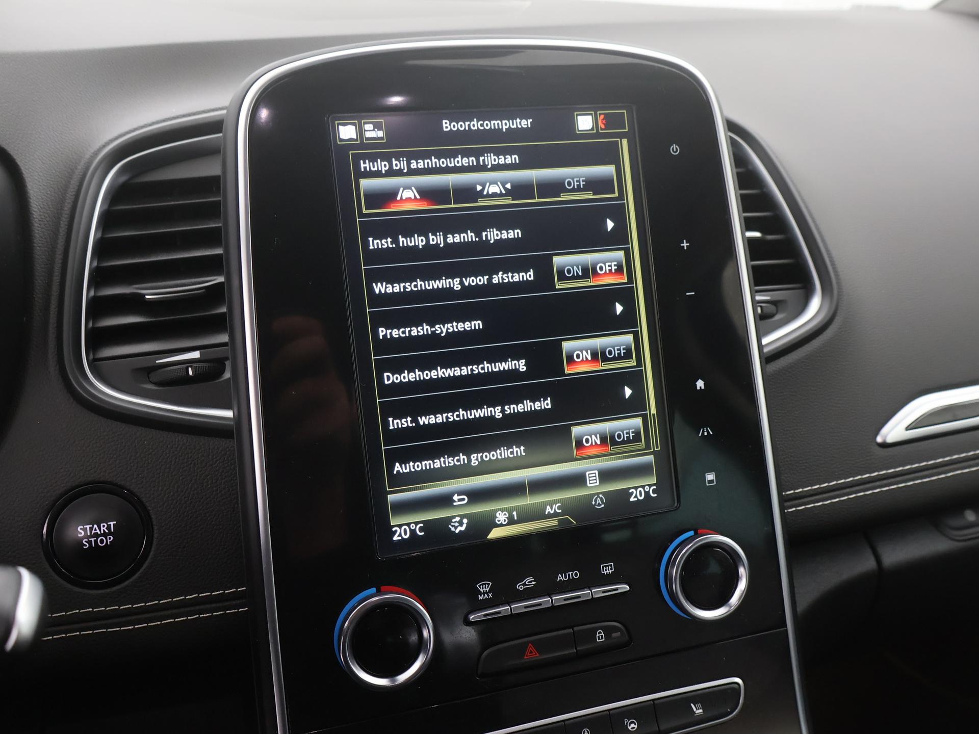 De nieuwste veiligheidssystemen komen in deze Renault Scénic samen. Onderweg fungeert de verkeersbord-detectie als het ware als uw bijrijder en attendeert u op de verkeersborden langs de weg. Het Lane-keeping systeem let constant op en waarschuwt of corrigeert als u onoplettend over de lijnen van de rijstrook gaat. Mindert een voorligger onverwachts te veel vaart, dan komt de forward collision warning in actie en waarschuwt meteen. De auto is ook uitgerust met head-up display, dodehoekdetectie, hill hold functie, brake assist, vermoeidheidsherkenning en bandenspanning controlesysteem.