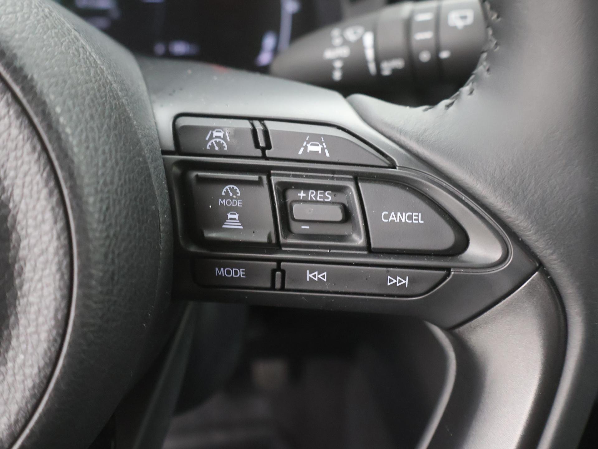 Een cockpit, een informatiecentrum... Wat is de cabine eigenlijk niet? Dankzij het digitale dashboard bent u van alles op de hoogte. Soepel inparkeren in de krapste parkeervakken. De achteruitrijcamera maakt het mogelijk. Adaptive cruise control is een comfortabele en veilige optie. Het systeem reguleert de snelheid en houdt automatisch afstand tot uw voorligger. Ingericht op Connected Services, voor een nog veiligere en comfortabelere rit. U bedient het audio-installatiesysteem met DAB-radio via knoppen op het stuur of met uw stem. Zo kunt u steeds uw aandacht gericht houden op de weg. De Toyota is standaard voorzien van: automatische airconditioning, draadloos opladen, regensensor, keyless entry, buitentemperatuurmeter en automatisch dimmende binnenspiegel.