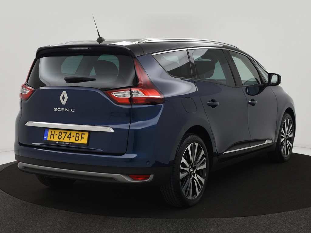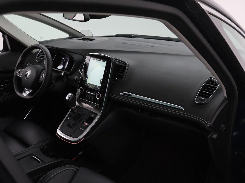 Alle technologie in de Renault Grand Scénic is er op gericht om uw rit veilig en gemakkelijk te laten verlopen. In deze auto vindt u een 1.3 viercilinder turbo benzinemotor met 160pk en een automatische transmissie. Het gevoel van luxe is inbegrepen dankzij het lederen interieur. De verwarmbare voorstoelen zijn voorzien van een massagefunctie, een weldaad voor rug en schouders in elk seizoen. Dankzij de elektrische stoelbediening is het gemakkelijk om de optimale zitpositie te vinden. In weer en wind een cabriosensatie? Dat kan met het riante glazen panoramadak. Dankzij de derde zitrij, kunt u gemakkelijk extra passagiers vervoeren. In deze auto profiteert u onder andere ook van: 20 inch lichtmetalen velgen, LED koplampen, extra getint glas, LED-achterlichten, verstelbare lendensteunen en verschuifbare achterbank.
