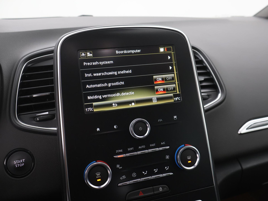 Het digitale dashboard stelt u in staat uw cockpitinterface te personaliseren. De hoogwaardige achteruitrijcamera en het display met hoge resolutie zorgen dat helemaal niets u meer ontgaat van wat er achter de auto gebeurt. Het full map navigatiesysteem en het audiosysteem (met DAB-ontvangst!) bedient u met knoppen op het stuur of met gesproken commando's. Tot de standaard uitrusting van deze auto hoort ook electronic climate control. Achter het stuur van deze Renault bent u niet alleen. De auto kijkt als het ware met u mee tijdens de rit. De regensensor schakelt de ruitenwissers in als het nodig is en de automatisch inschakelbare verlichting doet de lichten voor u aan. De Renault is standaard voorzien van: cruise control, keyless entry, automatisch dimmende binnenspiegel, centrale deurvergrendeling met afstandsbediening, boordcomputer en verstelbaar stuur.