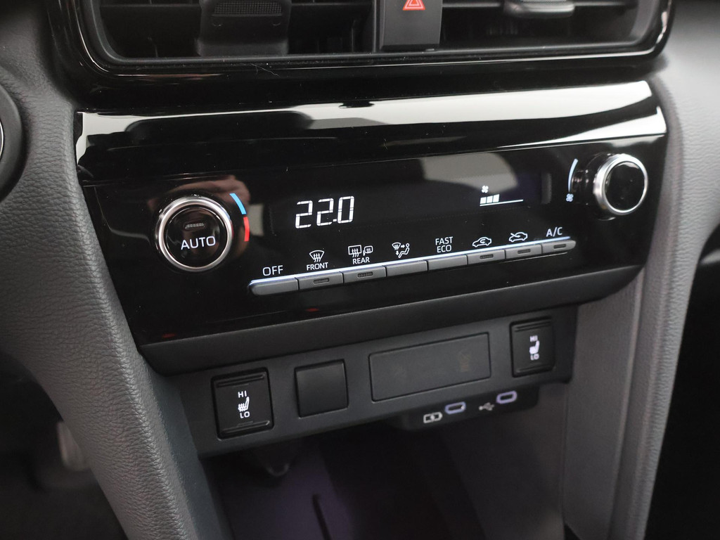 Snelheid, brandstofinfo, noem maar op. Het digitale dashboard houdt u permanent op de hoogte. Goed en overzichtelijk. Een handige optie is de achteruitrijcamera. Achteruitrijden, inparkeren en manoeuvreren gaat gemakkelijker dan ooit. Adaptive cruise control houdt de ingestelde snelheid vast en houdt afstand tot het voertuig voor u. Als u 'm vraagt 'hoe gaat het?' geeft deze auto zelf het antwoord. Via de app op uw smartphone. U checkt de meters waar u maar wilt, of activeert diverse functies alvast. Deze Toyota is voorzien van spraakbediening voor het audio-installatiesysteem met DAB-ontvangst. Maar u kunt ook de knoppen op het stuur gebruiken. Wat u ook in deze auto kunt vinden zijn automatische airconditioning, draadloos opladen, regensensor, keyless entry, buitentemperatuurmeter en automatisch dimmende binnenspiegel.