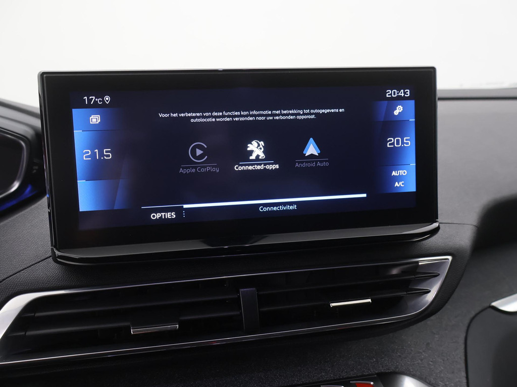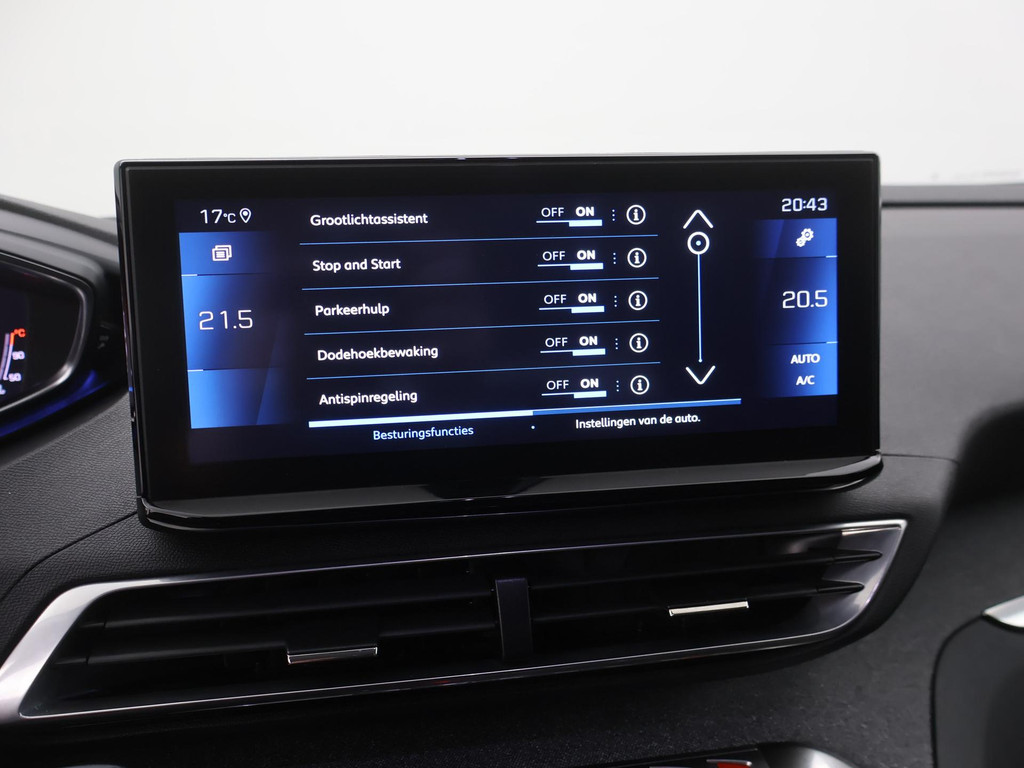 Adaptive cruise control is veilig en comfortabel. De snelheidsregelaar houdt automatisch afstand tot het voertuig dat voor u rijdt. Waar u zelf ook bent, u staat altijd in contact met de auto via de app op uw smartphone. Zo controleert u uiteenlopende functies, ook op afstand. In deze 5008 vindt u schakelaars op het stuur om het audiosysteem te bedienen. Bij de luxe van deze auto hoort ook automatische airconditioning. Ervaar het comfort van inparkeren met parkeersensoren. Deze auto laat zich moeiteloos in elk parkeervak manoeuvreren. Ook is de Peugeot uitgerust met: regensensor, automatisch dimmende binnenspiegel, lederen stuur en centrale deurvergrendeling met afstandsbediening.