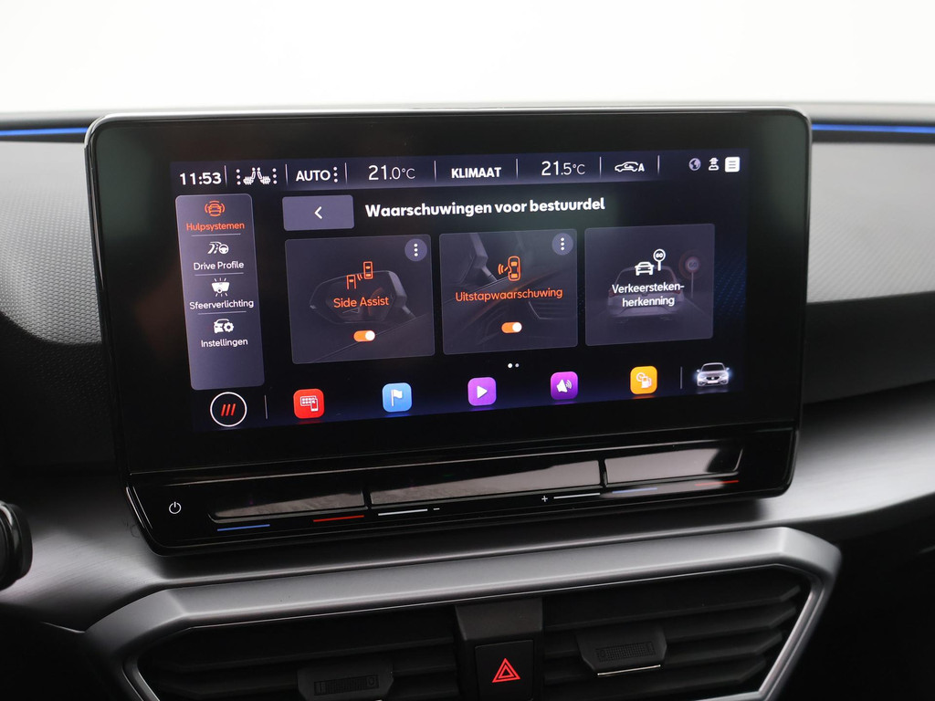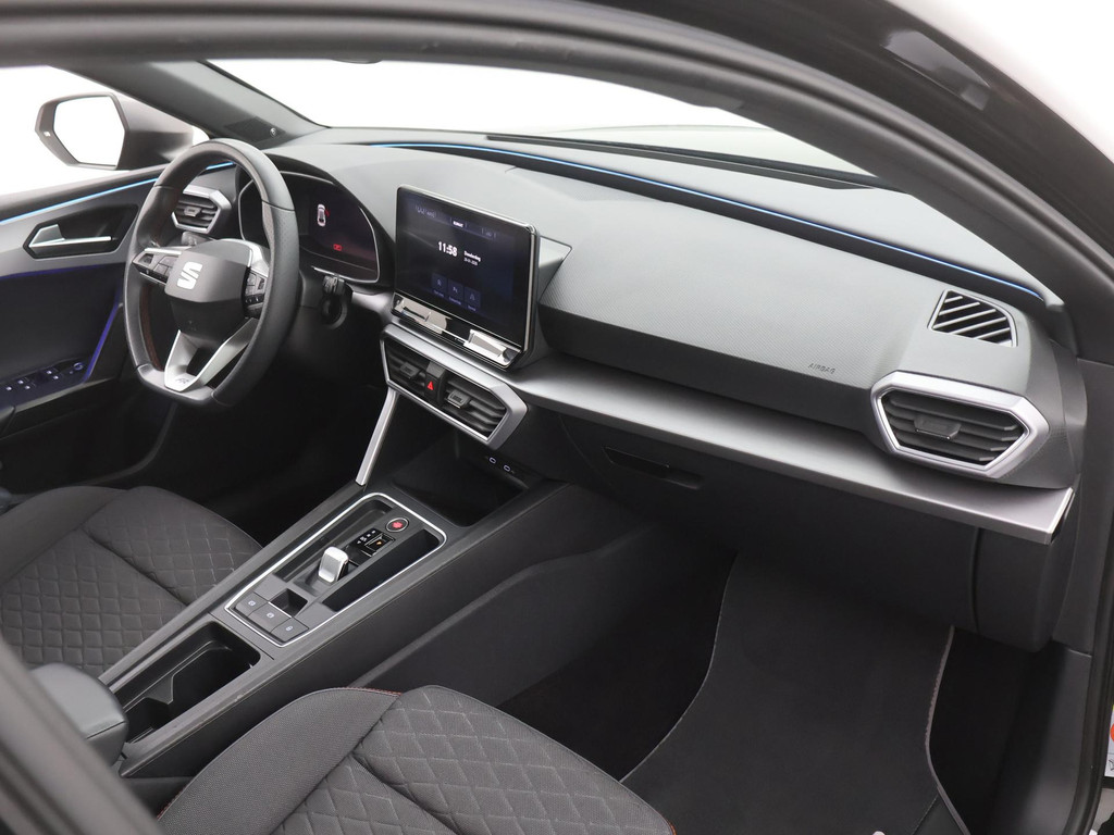 Het is een mooie auto, deze SEAT Leon uit 2021, hij heeft 102091 kilometer gereden. Ideaal rijden door de combi van elektromotor en verbrandingsmotor! Koude start? Niet met de verwarmbare voorstoelen! Opvallend zijn de stoere sportstoelen, die zorgen voor een onwrikbare zit in de scherpe bochten. Het interieur baadt in daglicht dankzij het elektrisch bediende glazen panoramadak. Aan een fijn opwarmertje in de kille dagen is gedacht, in de vorm van een verwarmd stuurwiel. Bij de uitrusting van deze SEAT horen onder meer 18 inch lichtmetalen velgen, Full LED koplampen, extra getint glas, in delen neerklapbare achterbank, LED-achterlichten en verstelbare lendensteunen.