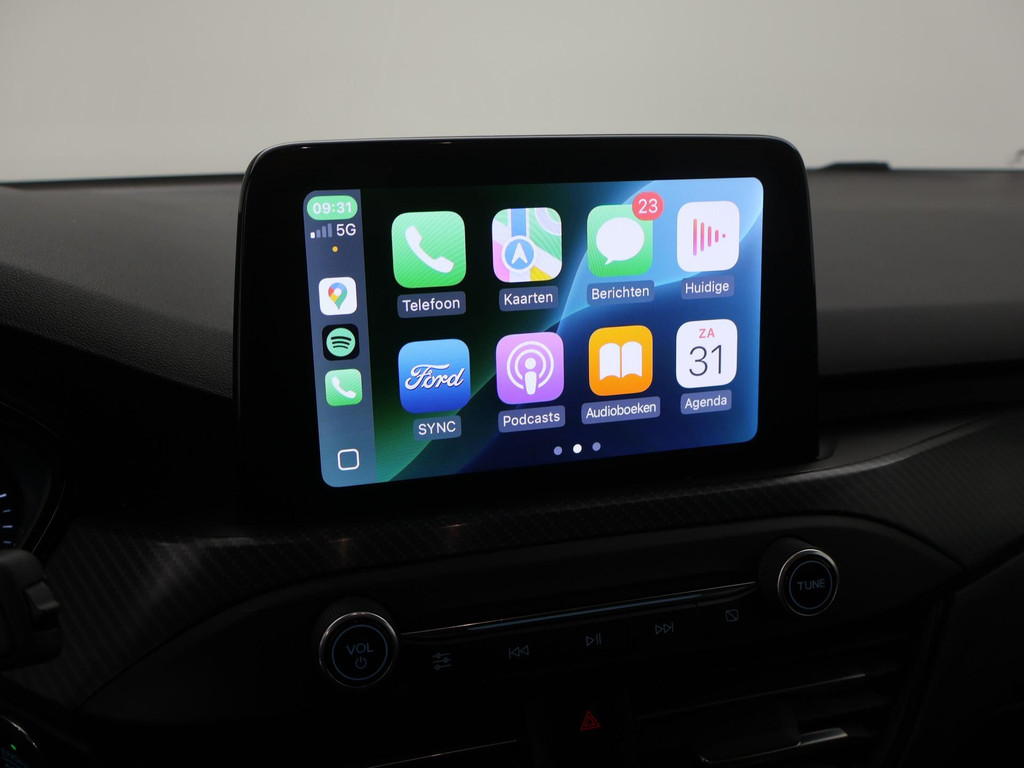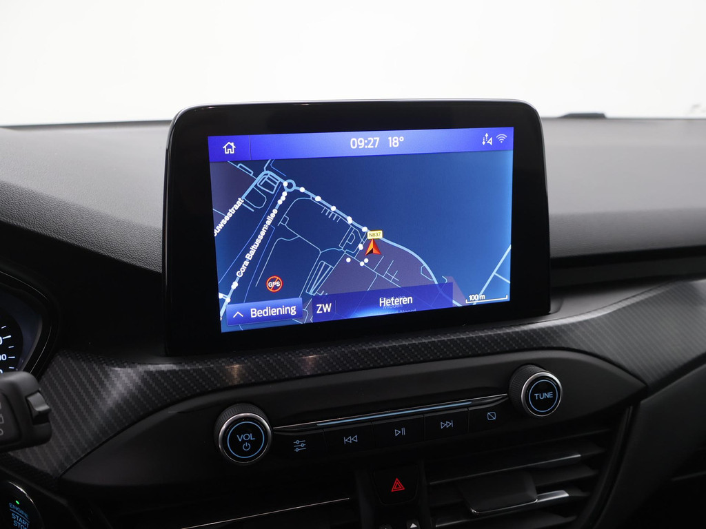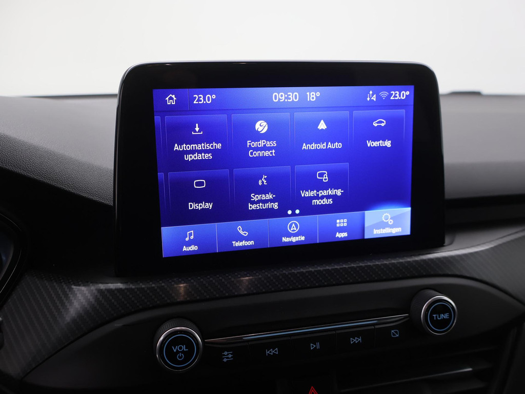 Handig en veilig: Connected Services. Alle vitale functies en data van de auto checkt u via de app op uw smartphone. Met spraakbediening of de knoppen op het stuur regelt u het audiosysteem en het full map navigatiesysteem, terwijl u uw blik op de weg gericht houdt. De audio-installatie biedt daarbij glasheldere ontvangst dankzij DAB-ontvangst. Natuurlijk is er ook automatische airconditioning aanwezig. Met de aanwezige parkeersensoren weet u altijd zeker of het past. Natuurlijk is een complete auto als deze ook voorzien van sensoren die de omgeving in de gaten houden. Deze Ford heeft niet alleen een automatisch inschakelbare verlichting aan boord, maar ook een regensensor. Met cruise control, keyless entry, automatisch dimmende binnenspiegel, centrale deurvergrendeling met afstandsbediening, bagage afdekhoes en boordcomputer is deze Ford helemaal compleet.