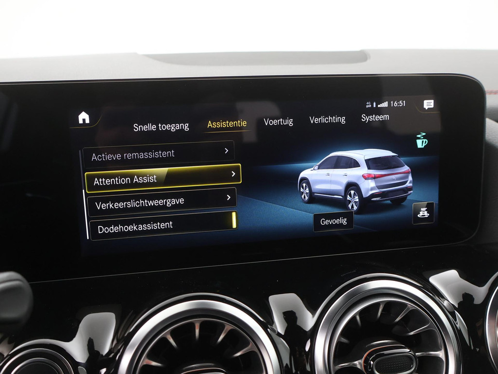 Zoals u mag verwachten van deze Mercedes-Benz EQA is hij uitgerust met een reeks aan actieve veiligheidssystemen. Het Lane-keeping systeem zorgt voor een automatisch constante positie binnen de rijstrook. Afdwalen is uitgesloten. Hoe goed u ook oplet in het verkeer, de dode hoek blijft een risico. Gelukkig is deze Mercedes-Benz EQA voorzien van actieve dodehoekdetectie. Forward collision warning waarschuwt bij een dreigende aanrijding met een voorligger. Met voorzieningen als hill hold functie, vermoeidheidsherkenning, autonoom remsysteem en bandenspanning controlesysteem, bent u altijd veilig onderweg.