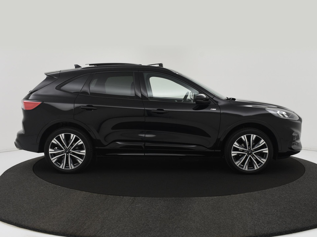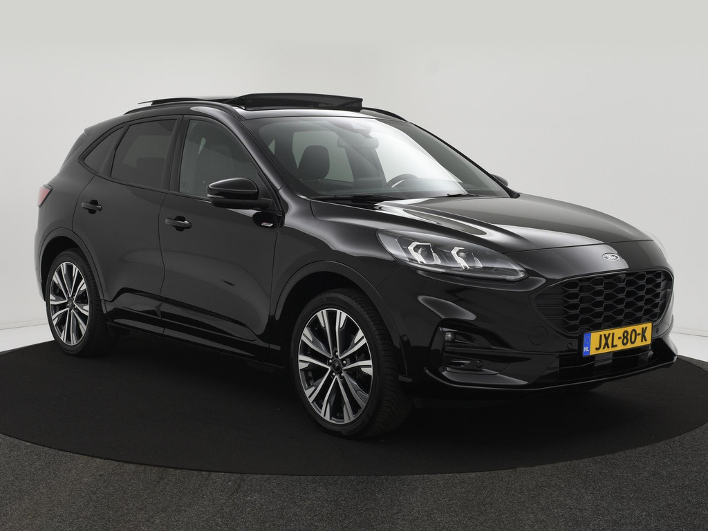 De Ford Kuga is gebouwd met hoogwaardige techniek en maakt het rijden van lange ritten, maar ook korte stukjes, tot een feestje. De hybride motor van deze Ford Kuga zorgt dat u opvallend veel minder brandstof verbruikt dankzij de ondersteuning van de elektromotor met z'n eigen accu. En die laadt u al rijdend bij. Slim en zuinig! Voorin is het 's winters genieten met de verwarmbare AGR voorstoelen voor zowel bestuurder als bijrijder. Fijn zo'n elektrisch bediend glazen panoramadak. De achterklep opent automatisch met een druk op de knop. Handig als u met volle handen staat. Ook in winterse omstandigheden is rijden een plezier, niet in de laatste plaats dankzij het verwarmd stuurwiel. Ook 20 inch lichtmetalen velgen, LED koplampen, geluidsisolerende ramen, in delen neerklapbare achterbank, LED-achterlichten en snelheidsafhankelijke stuurbekrachtiging zijn aan boord. Gaat u graag met de caravan of fietsendrager op pad. Dan is de elektrisch wegklapbare trekhaak een praktische extra. het trekgewicht bedraagt 1500KG.