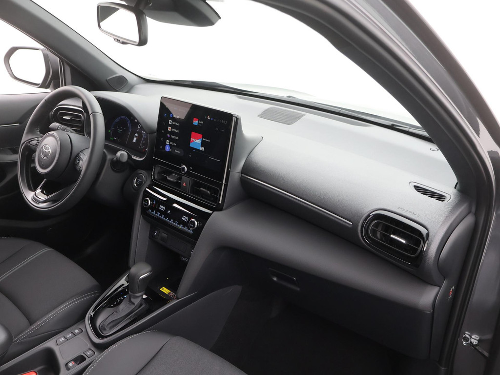 Afstand schatten bij het achteruitrijden? Niet nodig. U weet het precies, dankzij de achteruitrijcamera. Adaptive cruise control is veilig en comfortabel. De snelheidsregelaar houdt automatisch afstand tot het voertuig dat voor u rijdt. Dankzij de spraaksturing bedient u verschillende functies zonder uw handen van het stuur te halen. Deze Toyota Yaris Cross is 'connected'. Belangrijke functies worden permanent gemeten en zijn uit te lezen via een speciale app, ook op afstand. De electronic climate control zorgt onder alle omstandigheden voor een prettige temperatuur. Natuurlijk behoren draadloos opladen, DAB ontvangst, regensensor, keyless entry, buitentemperatuurmeter en automatisch dimmende binnenspiegel ook tot de uitrusting van deze complete auto.
