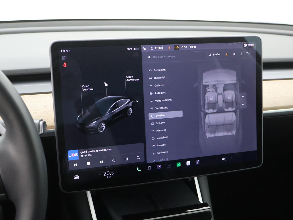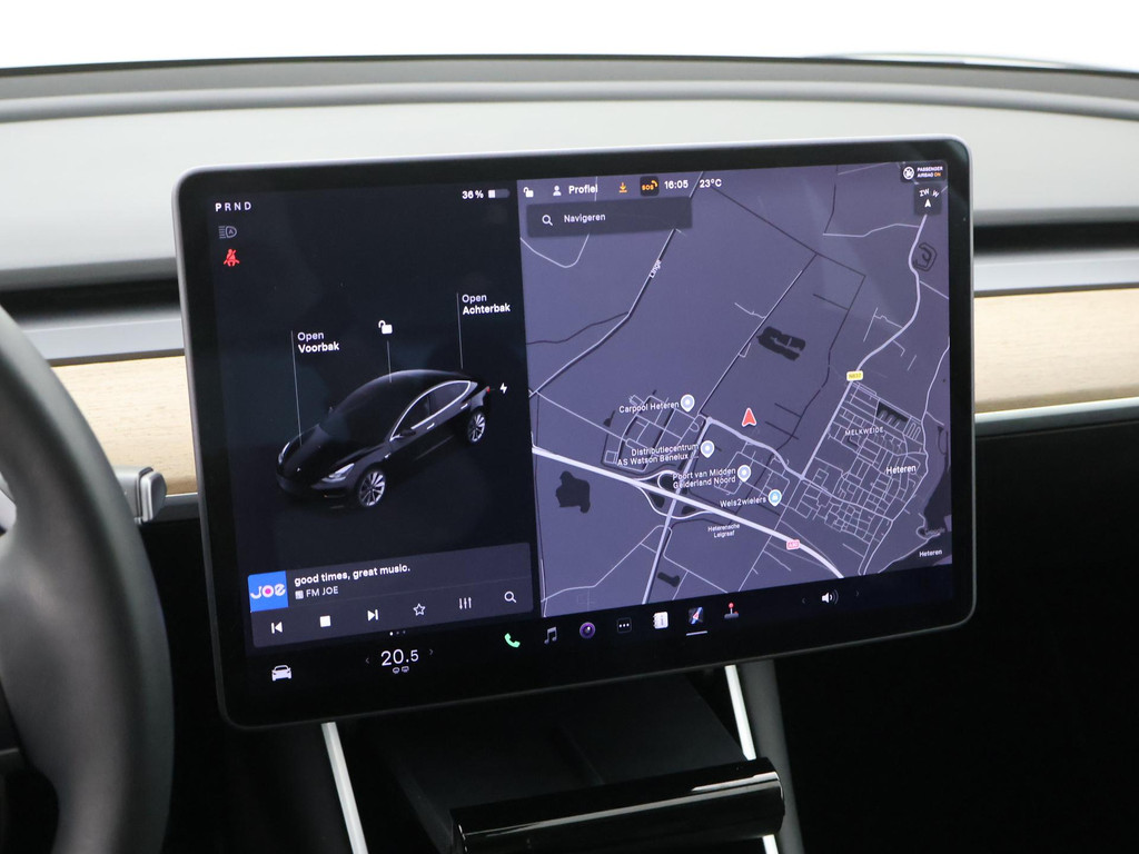 Pragmatisch en veilig als deze auto is, beschikt hij over diverse veiligheidssystemen. Deze Tesla Model 3 blijft altijd alert. Zo wordt gebruik gemaakt van forward collision warning. Bij het mogelijke risico op een aanrijding met een voertuig voor u, slaat het systeem alarm. De auto is ook uitgerust met dodehoekdetectie en autonoom remsysteem.