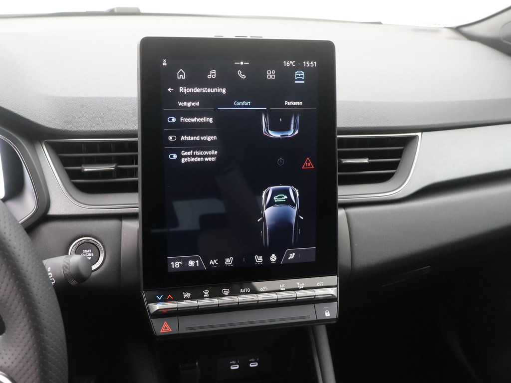 U geniet nog meer van het rijden met uw Renault omdat u wordt beschermd door intelligente veiligheidssystemen. Het Lane-keeping systeem garandeert dat u zich niet onverhoeds buiten de lijnen van de rijstrook begeeft. De sensor van het forward collision warning-systeem registreert permanent de afstand tot voorliggers en grijpt in als een botsing dreigt. Om te voorkomen dat u tijdens lange ritten achter het stuur in slaap valt, is deze auto voorzien van vermoeidheidsherkenning. De veiligheid van deze auto wordt verder verhoogd door hill hold functie, brake assist en bandenspanning controlesysteem.