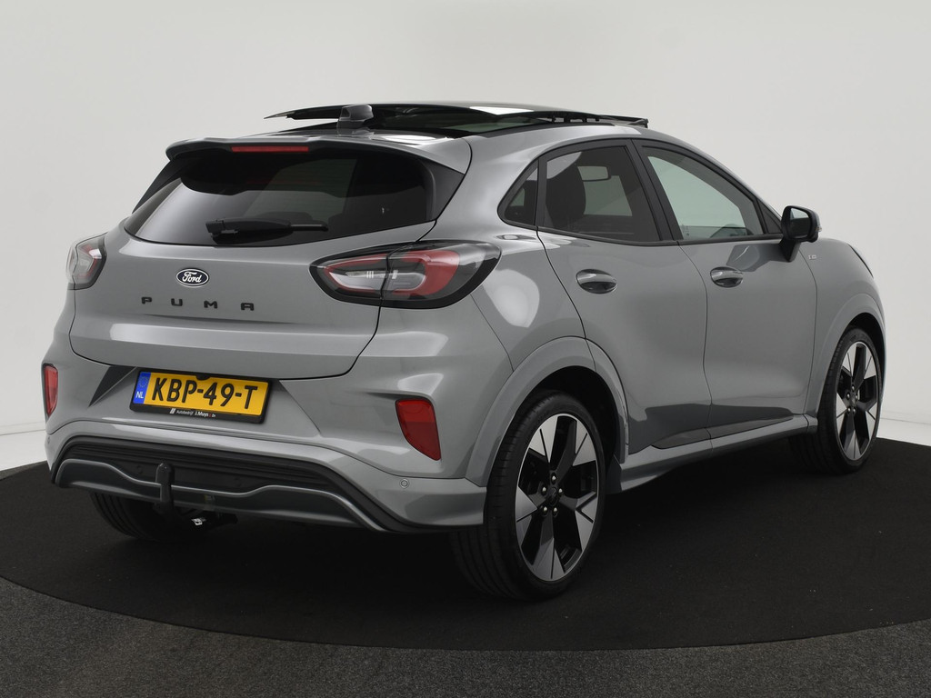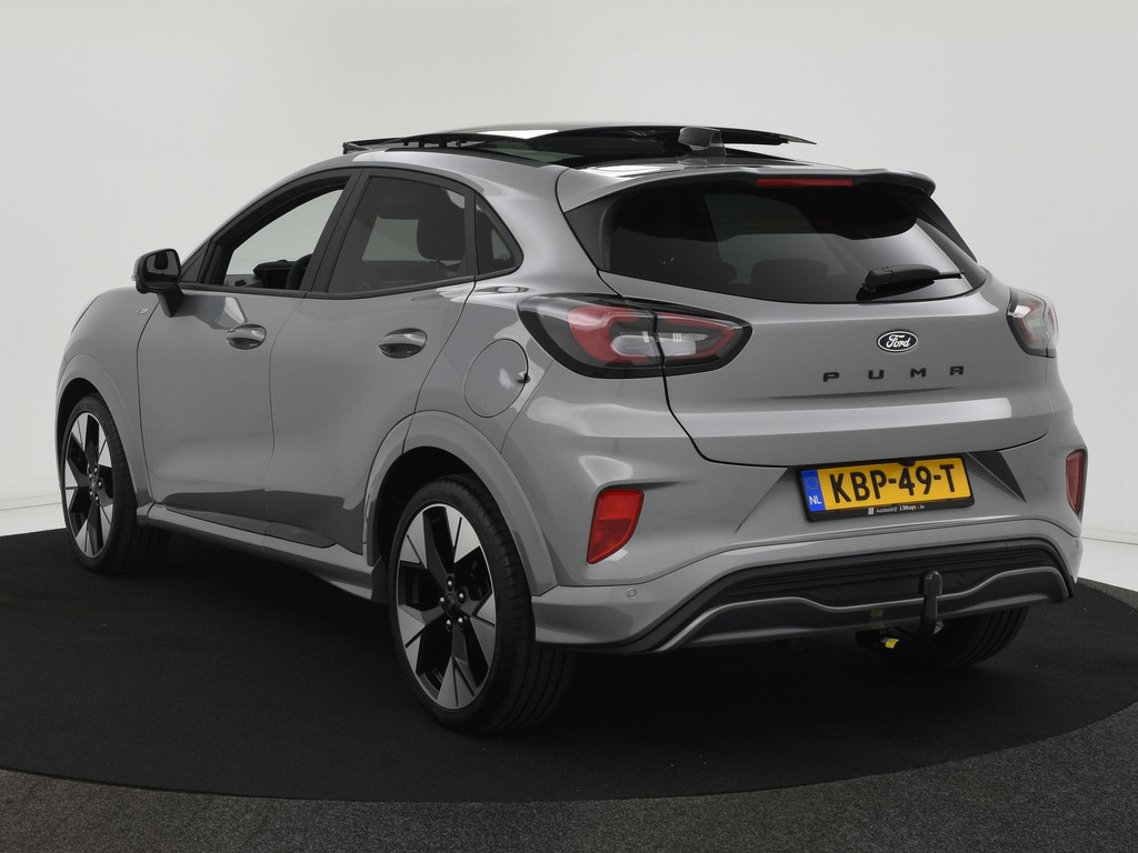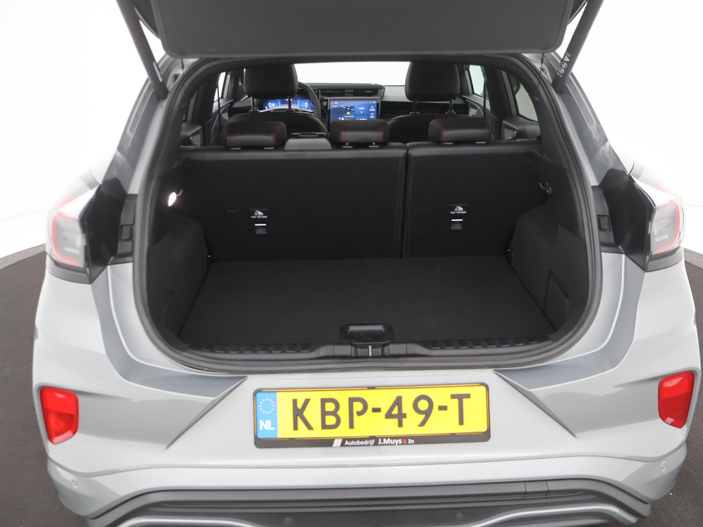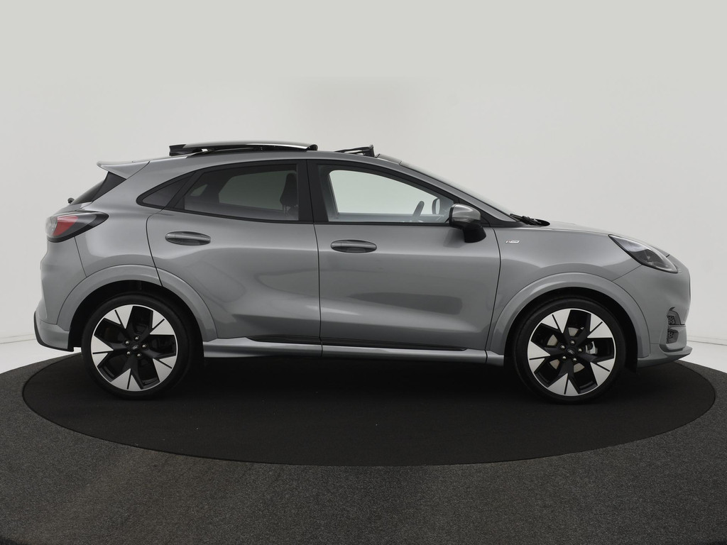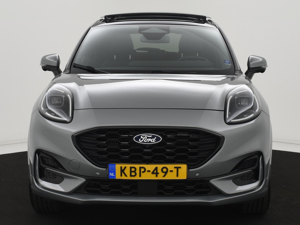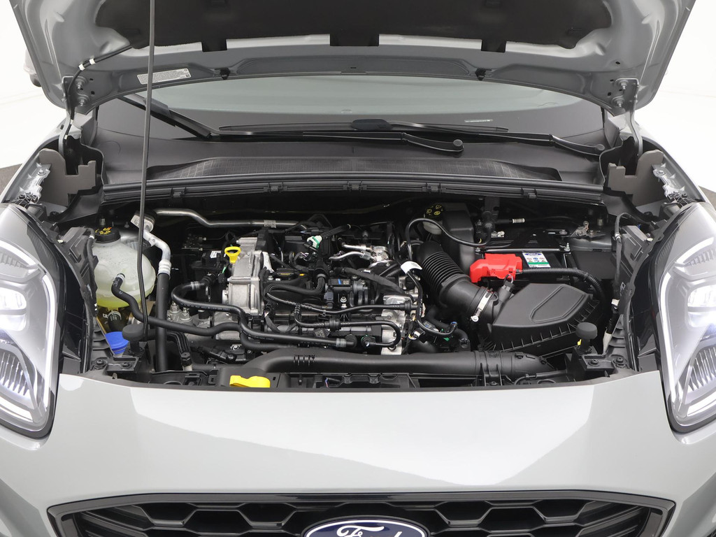 Alle technologie in de Ford Puma is er op gericht om uw rit veilig en gemakkelijk te laten verlopen. De auto heeft een mooie lage kilometerstand van slechts 5967km Rijden op brandstof én elektriciteit? Dat kan, met de hybride motor van deze Ford Puma. De elektromotor ondersteunt de brandstofmotor. Scheelt lekker in de kosten! De ruime lichtinval door het elektrisch bediende glazen panorama dak zorgt voor een heerlijk ruim gevoel. Met één klik te openen voor frisse lucht en een mild windje in de auto. Dat is gemak en plezier! Overigens is het happy-klik gevoel ook aanwezig bij de elektrisch bedienbare achterklep. Lekker hoor, die verwarmbare voorstoelen. Helemaal op koude dagen. Goeie looks? Jazeker! Maar de sportstoelen zorgen ook voor een goed gesteunde en comfortabele zit. Deze Ford Puma heeft een verwarmd stuurwiel. Nooit meer koude handen onderweg. Bij de rijke uitrusting horen ook 19 inch lichtmetalen velgen, LED koplampen, geluidsisolerende ramen, in delen neerklapbare achterbank, LED-achterlichten en verstelbare lendensteunen.
