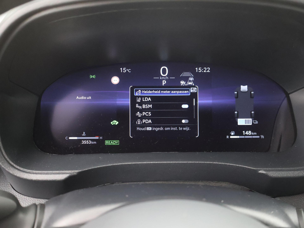 Niets achter deze auto blijft verborgen door de achteruitrijcamera. Een veilig gevoel! Met adaptive cruise control houdt de auto zelfstandig afstand tot uw voorligger. Een veiligheidsverhogende optie waarmee u comfortabel onderweg bent. Hoe is het met de banden, de accu en andere onderdelen? Connected Services maakt het inzichtelijk, 24/7 via de app. Het audio-installatiesysteem met DAB-radio biedt glasheldere geluidskwaliteit. U bedient dit veilig, via het stuurwiel of met spraakbediening. De auto is voorzien van een draadloze telefoonlader, zodat uw smartphone tijdens de rit 100% wordt. De Toyota is standaard voorzien van: electronic climate control, regensensor, keyless entry, buitentemperatuurmeter, automatisch dimmende binnenspiegel en lederen stuur.
