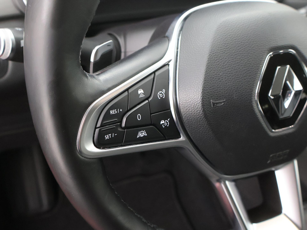 Comfortabel en veilig achteruitrijden gaat gemakkelijker dan ooit met behulp van de achteruitrijcamera. Met adaptive cruise control houdt deze auto automatisch afstand tot uw voorligger. Via uw smartphone en Connected Services checkt u eenvoudig de belangrijke functies van de auto, overal en altijd. Onderweg kunt u veilig genieten van het audiosysteem met DAB-radio en het navigatiesysteem. Want in deze Renault bedient u ze vanaf het stuurwiel. Geen gedoe met snoertjes! De draadloze telefoonlader zorgt onderweg weer voor een volle smartphone-accu. U bent in deze Renault ook voorzien van electronic climate control, regensensor, keyless entry, automatisch dimmende binnenspiegel, boordcomputer en lederen versnellingspook.