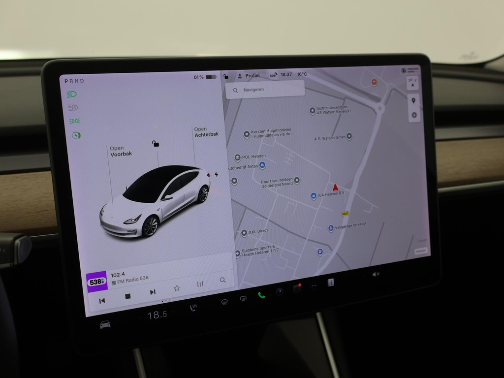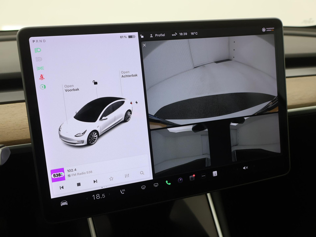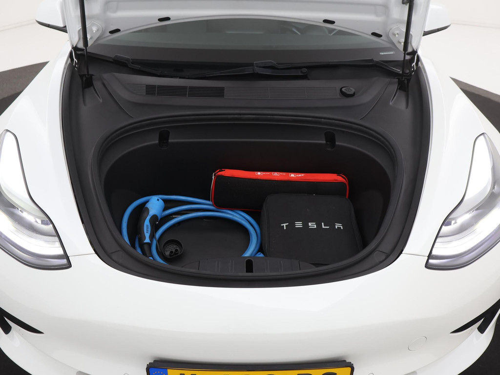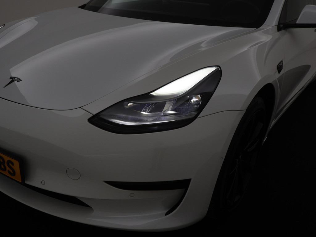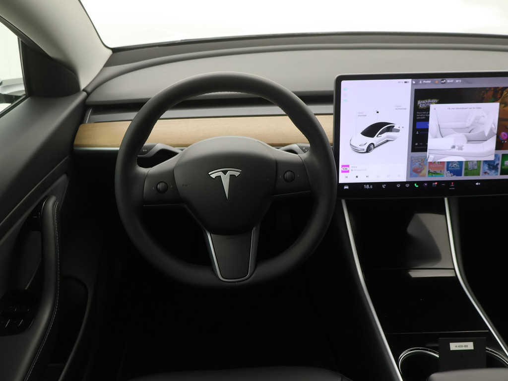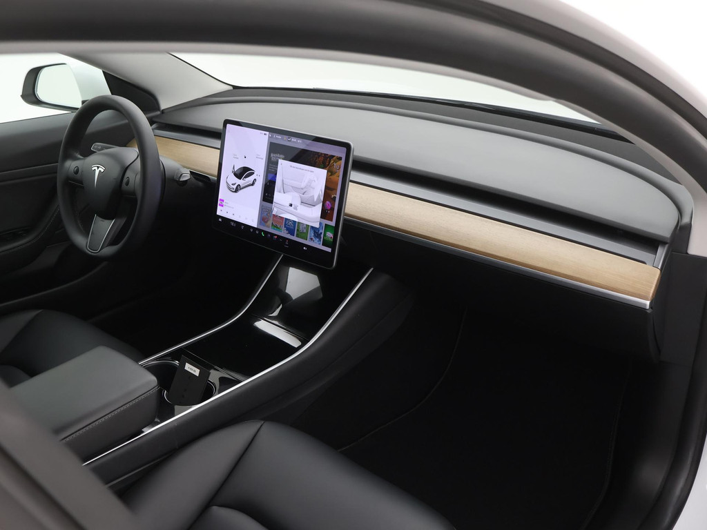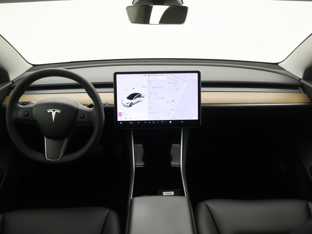 Adaptive cruise control is een comfortabele en veilige optie. Het systeem reguleert de snelheid en houdt automatisch afstand tot uw voorligger. Naast de routeinformatie van het full map navigatiesysteem kunt u muziek via het audio-installatiesysteem ook online beluisteren via bluetooth. In een auto als deze kunt u niet zonder electronic climate control, zodat de temperatuur altijd goed is. Geen sleutel of afstandsbediening meer nodig om deze Tesla Model 3 te ontgrendelen. De sloten gaan vanzelf open als u dichtbij komt, via de sensor van de keyless entry. Het doek is gevallen voor de ouderwetse autosleutel. Instappen en wegrijden gaat met keyless start. En deze auto heeft ook dashboard met spraakbediening en automatisch dimmende buitenspiegels als standaard uitrusting.