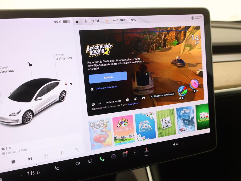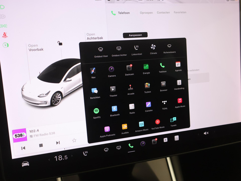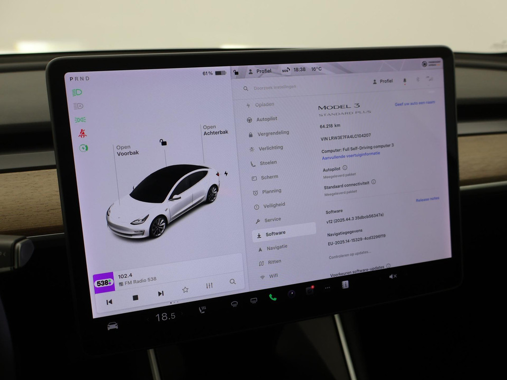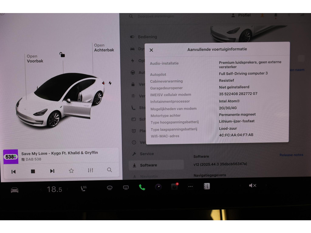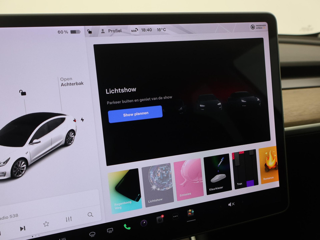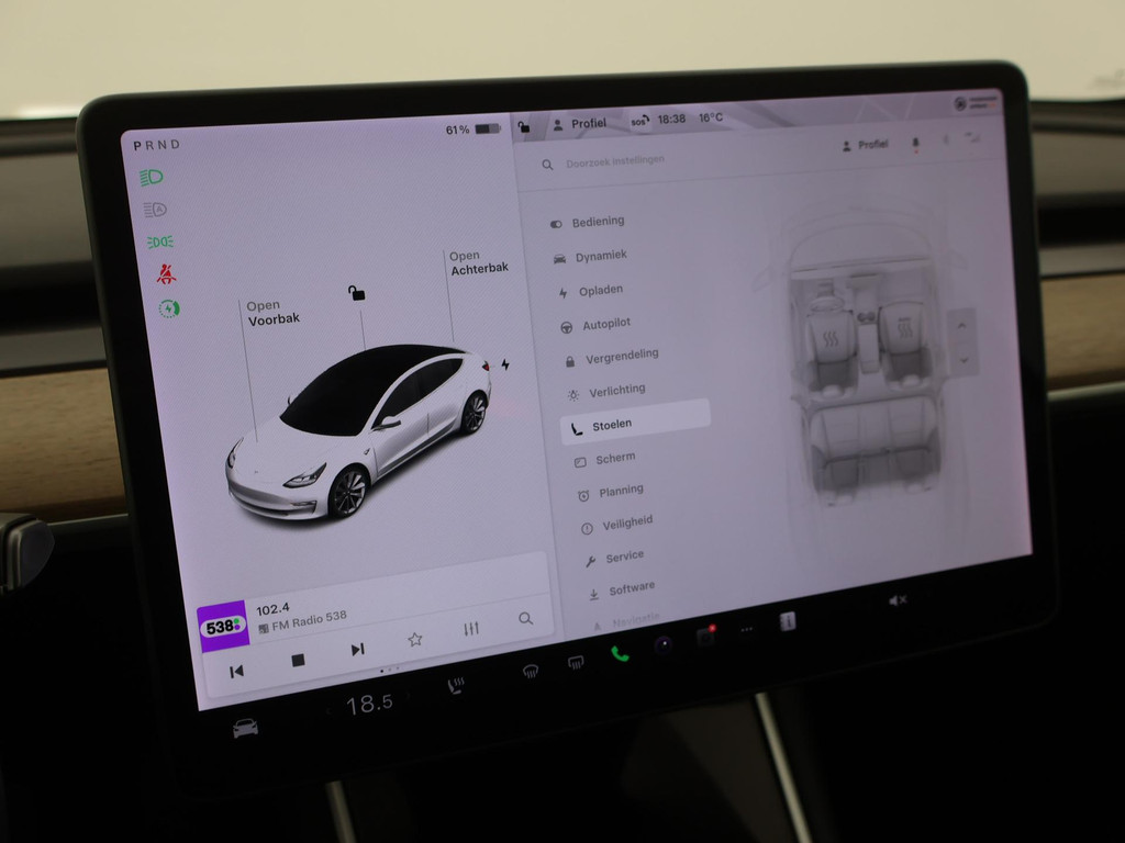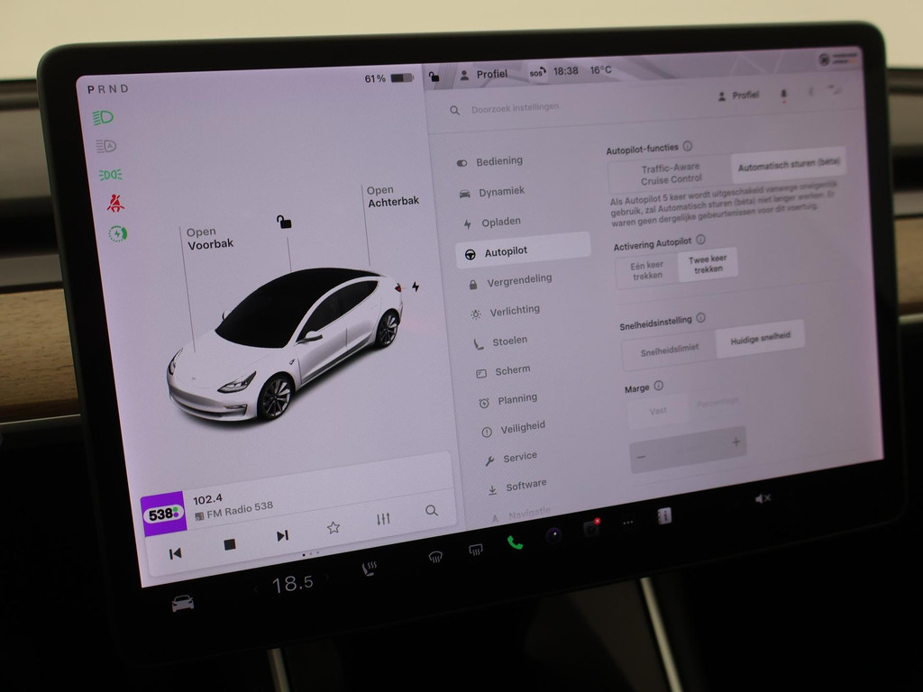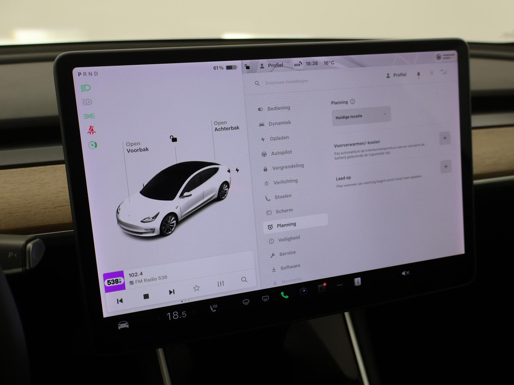 Adaptive cruise control is een comfortabele en veilige optie. Het systeem reguleert de snelheid en houdt automatisch afstand tot uw voorligger. Naast de routeinformatie van het full map navigatiesysteem kunt u muziek via het audio-installatiesysteem ook online beluisteren via bluetooth. In een auto als deze kunt u niet zonder electronic climate control, zodat de temperatuur altijd goed is. Geen sleutel of afstandsbediening meer nodig om deze Tesla Model 3 te ontgrendelen. De sloten gaan vanzelf open als u dichtbij komt, via de sensor van de keyless entry. Het doek is gevallen voor de ouderwetse autosleutel. Instappen en wegrijden gaat met keyless start. En deze auto heeft ook dashboard met spraakbediening en automatisch dimmende buitenspiegels als standaard uitrusting.