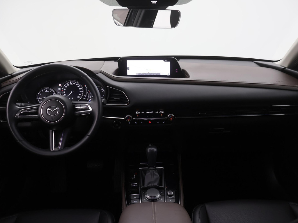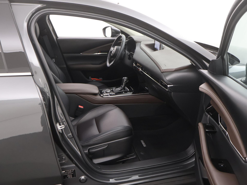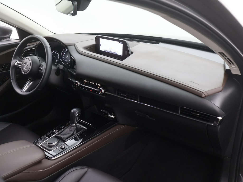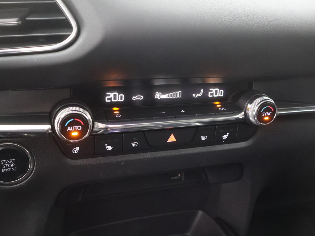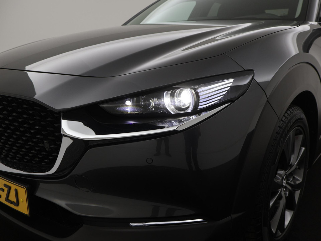 Het eigentijdse ontwerp en de toonaangevende techniek maken van iedere Japanse auto een kwaliteitsproduct. Dat is ook te merken aan deze Mazda CX-30. Dit is een auto uit 2020, er staat 61110 kilometer op de teller. De pluspunten van rijden op benzine en rijden op elektriciteit zijn soms lastig te vergelijken. Dus komt de hybride motor van deze Mazda CX-30 mooi uit. De perfecte combi! Ouderwets vakmanschap en natuurlijke materialen komen samen in het lederen interieur. De verwarmbare voorstoelen zijn een weldaad voor rug en schouders. Het interieur lijkt groter en ruimtelijker dankzij het elektrisch bedienbare glazen panoramadak. Een handige voorziening op deze auto is de elektrische achterklep die u op afstand kunt openen. Al is het nog zo fris, koude handen zijn verleden tijd door het verwarmd stuurwiel. Bij de zeer complete uitrusting van deze auto behoren ook 18 inch lichtmetalen velgen, LED koplampen, dakspoiler, extra getint glas, in delen neerklapbare achterbank en LED-achterlichten.