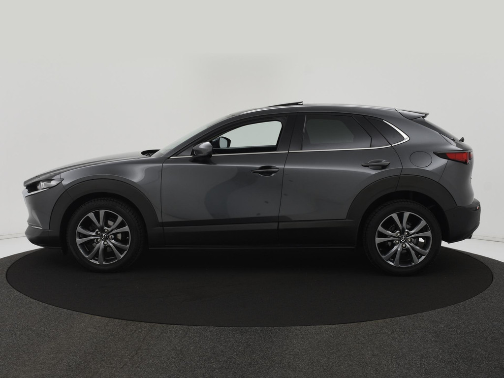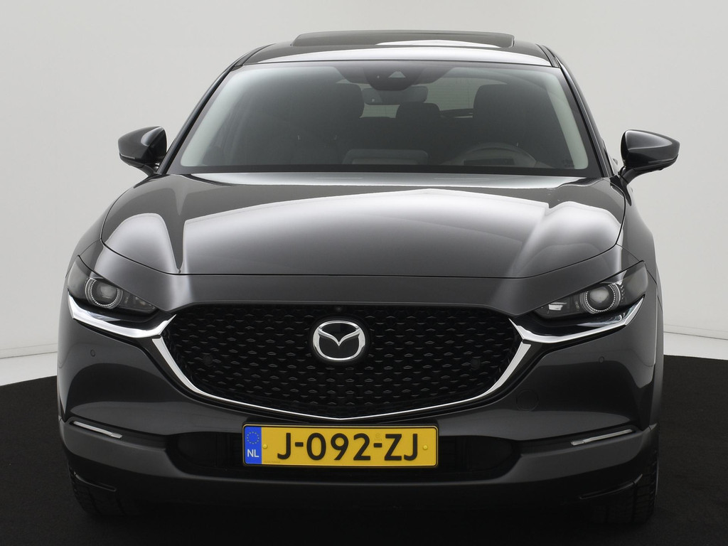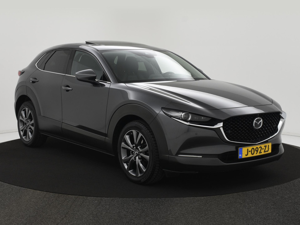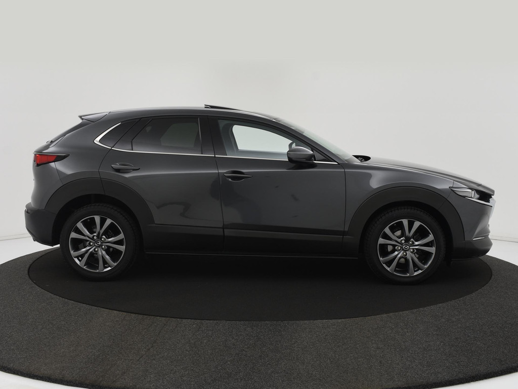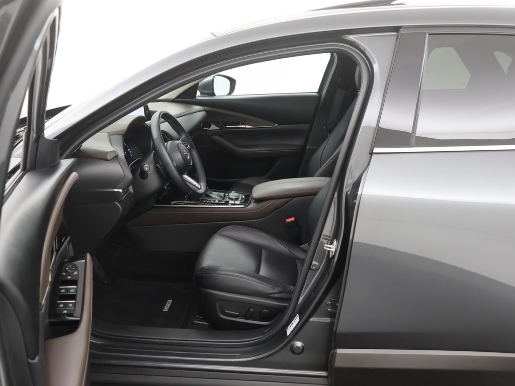 Het eigentijdse ontwerp en de toonaangevende techniek maken van iedere Japanse auto een kwaliteitsproduct. Dat is ook te merken aan deze Mazda CX-30. Dit is een auto uit 2020, er staat 61110 kilometer op de teller. De pluspunten van rijden op benzine en rijden op elektriciteit zijn soms lastig te vergelijken. Dus komt de hybride motor van deze Mazda CX-30 mooi uit. De perfecte combi! Ouderwets vakmanschap en natuurlijke materialen komen samen in het lederen interieur. De verwarmbare voorstoelen zijn een weldaad voor rug en schouders. Het interieur lijkt groter en ruimtelijker dankzij het elektrisch bedienbare glazen panoramadak. Een handige voorziening op deze auto is de elektrische achterklep die u op afstand kunt openen. Al is het nog zo fris, koude handen zijn verleden tijd door het verwarmd stuurwiel. Bij de zeer complete uitrusting van deze auto behoren ook 18 inch lichtmetalen velgen, LED koplampen, dakspoiler, extra getint glas, in delen neerklapbare achterbank en LED-achterlichten.