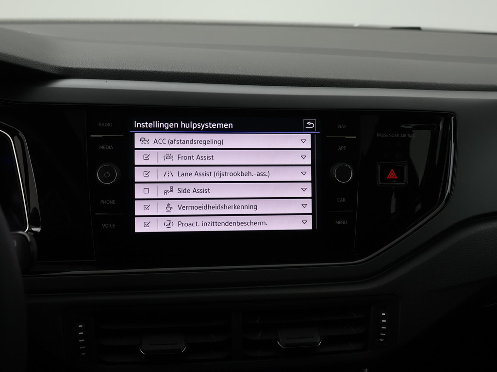 Aan boord van deze Volkswagen houden verschillende geavanceerde systemen voor u de weg in de gaten. Ze waarschuwen u voor noodsituaties en kunnen in een aantal gevallen ook zelf ingrijpen. Onderweg fungeert de verkeersbord-detectie als het ware als uw bijrijder en attendeert u op de verkeersborden langs de weg. Een camera houdt de juiste koers binnen de rijstrook in de gaten en het Lane-keeping systeem corrigeert bij afwijkingen. Het systeem van forward collision warning, of in gewoon Nederlands 'botswaarschuwing', treedt in werking als de sensor te weinig afstand signaleert met een voor- of tegenligger. In deze Volkswagen vinden we verder een hill hold functie, vermoeidheidsherkenning, autonoom remsysteem en bandenspanning controlesysteem.