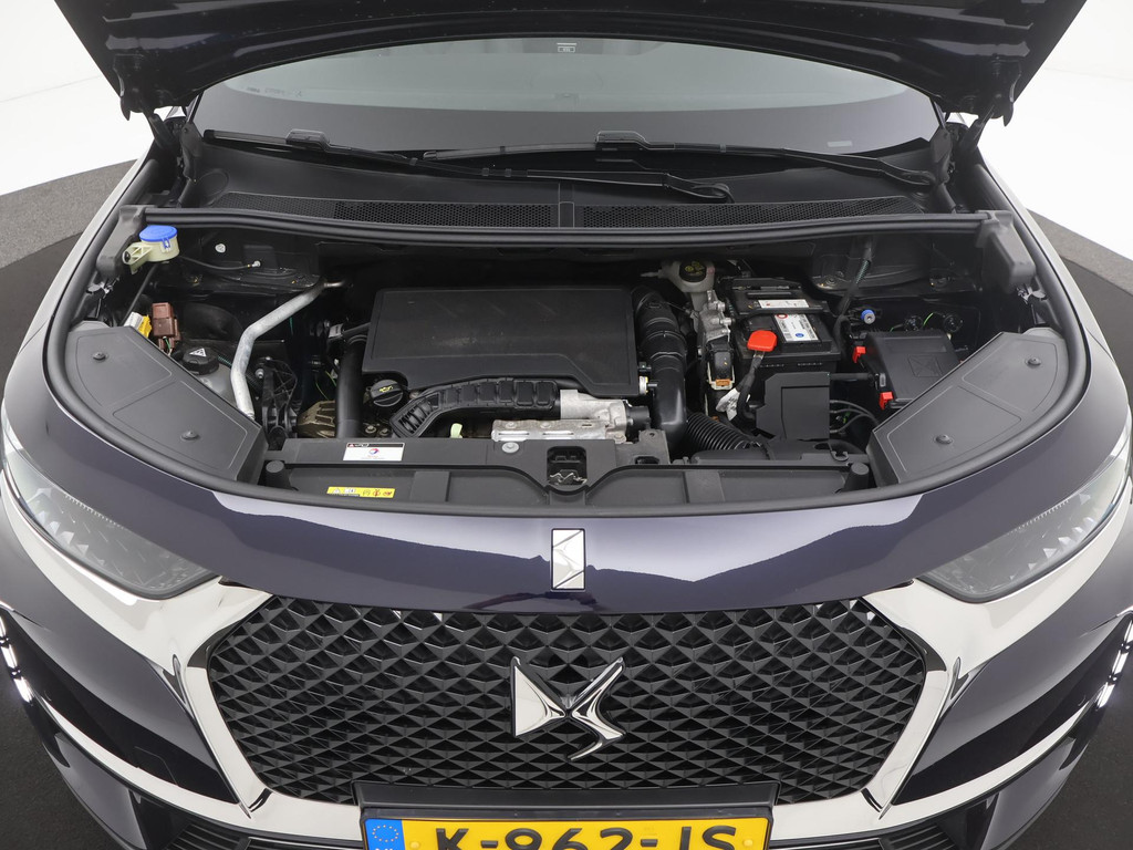 Dankzij het digitale dashboard in deze auto kan u de interface van uw cockpit personaliseren. Deze DS 7 Crossback is 'connected'. Belangrijke functies worden permanent gemeten en zijn uit te lezen via een speciale app, ook op afstand. In deze auto wordt u elke rit opnieuw bijgestaan door een gebruiksvriendelijk full map navigatiesysteem, terwijl u luistert naar het glasheldere geluid van het audio-installatiesysteem met DAB-radio. Zoals van een eigentijdse auto verwacht mag worden, is deze DS 7 Crossback voorzien van een draadloze oplaadmogelijkheid voor telefoons. De auto is ook uitgevoerd met electronic climate control. Deze DS is voorzien van dashboard met spraakbediening, parkeersensoren achter, regensensor, cruise control, automatisch dimmende binnenspiegel en lederen stuur.